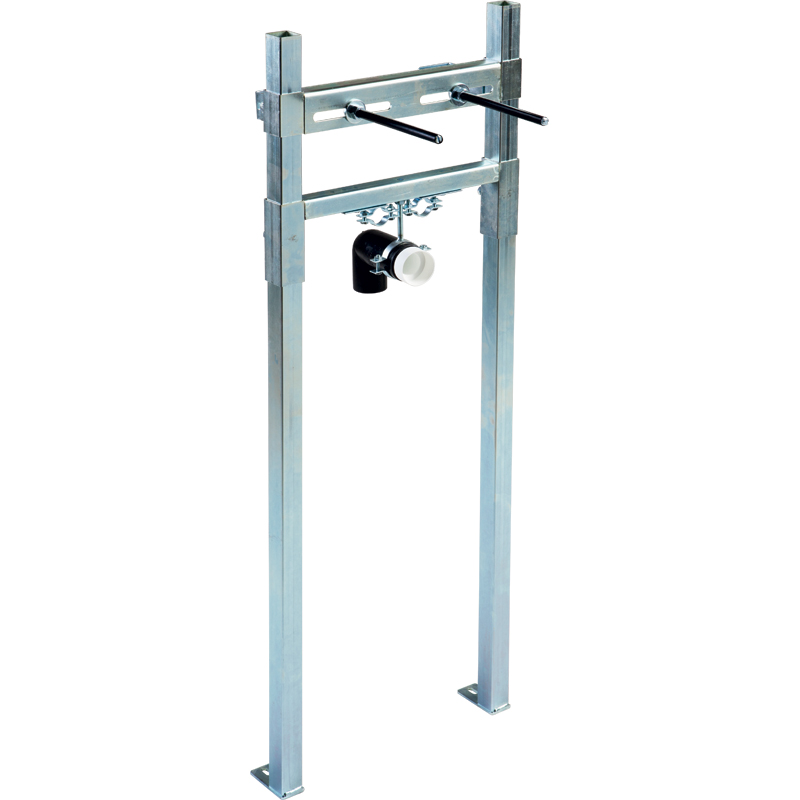 Telaio autoportante per lavabo adatto ad uso su pareti leggere - tipo cartongesso - realizzato in acciaio zincato. L'articolo viene fornito pre-montato, provvisto di quattro zanche e due barre filettate M10 regolabili da 17 a 28 cm.