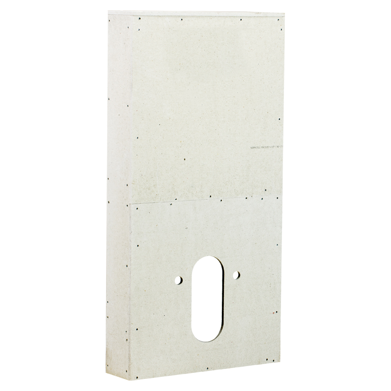 Modulo sanitario per bidet, realizzato in fibra di cellulosa e gesso supportato da una struttura leggera in metallo.